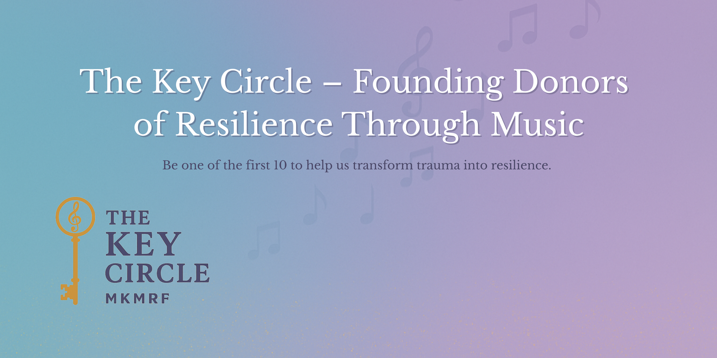 The Key Circle is reserved for the first 10 donors contributing $1,000 or more. These visionaries form the foundation of the Marnie Knaak Music and Resilience Foundation, ensuring children of trauma have access to safe, trauma-informed music education.